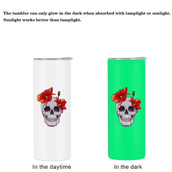 Glüht im Dunkeln: Mit leuchtender Beschichtung kann dieser Sublimationsbecher im Dunkeln leuchten, der schmale Becher für Sublimation muss Licht absorbieren und im Dunkeln leuchten.