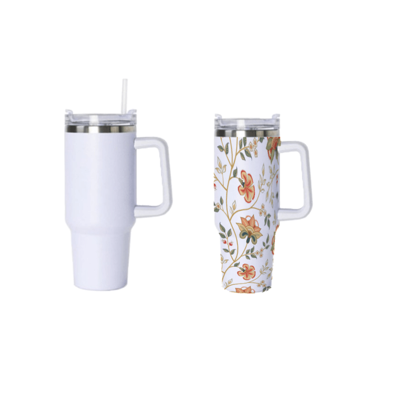40oz 25pcs Sublimation Tumbler mit Griff, leer, isoliert, große Tasse, Kaffee, Reise Becher, Edelstahl, Reise Becher für DIY, Handwerk, Hitze Presse, Drucken