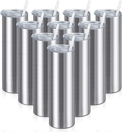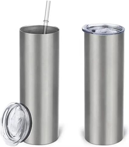 Buwaters 24pack 20oz Skinny Edelstahl Tumbler Isolierung Doppelwand Tumbler mit Deckel und Stroh (20oz, Silver24pack)