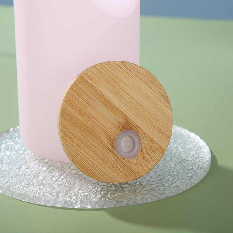 # Bamboo cover & Plastic straw:bamboo lid has strong sealing performance with silicone ring to help mitigate large spills. Plastic straws don't break easily. It's convenient for drinking with perforated lid and straw.