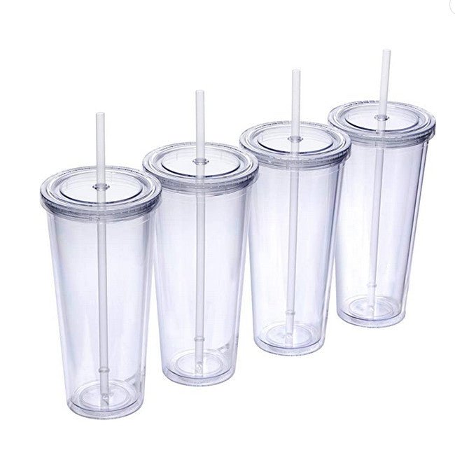 - Bpa free: high quality 100% acrylic plastic construction is extra durable and comes equipped with a secured screw on lid and matching colored reusable straws